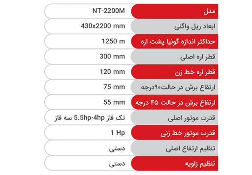 مدل این دستگاه NT-2200M بوده و ابعاد ریل واگنی آن 2200*430 میلیمتر است. این ابعاد نشاندهندهی فضای کافی و قابلیت انجام برشهای بلند و عریض است. با توحه به همین طراحی دقیق، این دستگاه به راحتی در محیطهای مختلف کارگاهی قرار میگیرد و کاربری آسانی دارد.