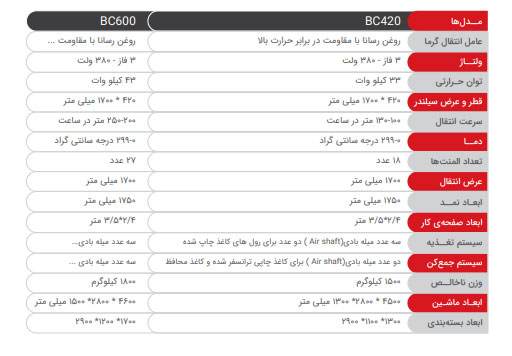 دستگاههای کلندر از روغن داغ رسانا با مقاومت بالا در برابر حرارت استفاده میکند. این تکنولوژی باعث ایجاد حرارتی یکنواخت در سیلندر و بهبود کیفیت چاپ میشود. - ولتاژ مورد نیاز